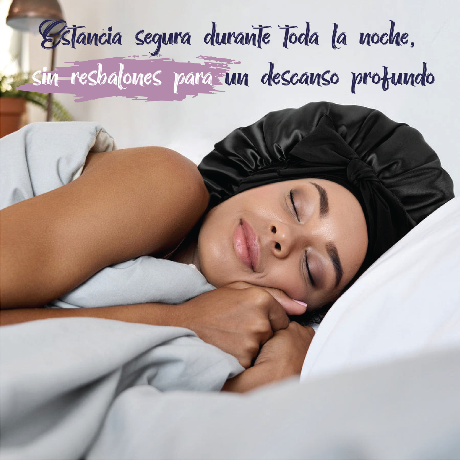 Gracias a su lazo ajustable, el gorro se adapta a cualquier tamaño, brindando comodidad segura sin deslizamientos durante toda la noche.
